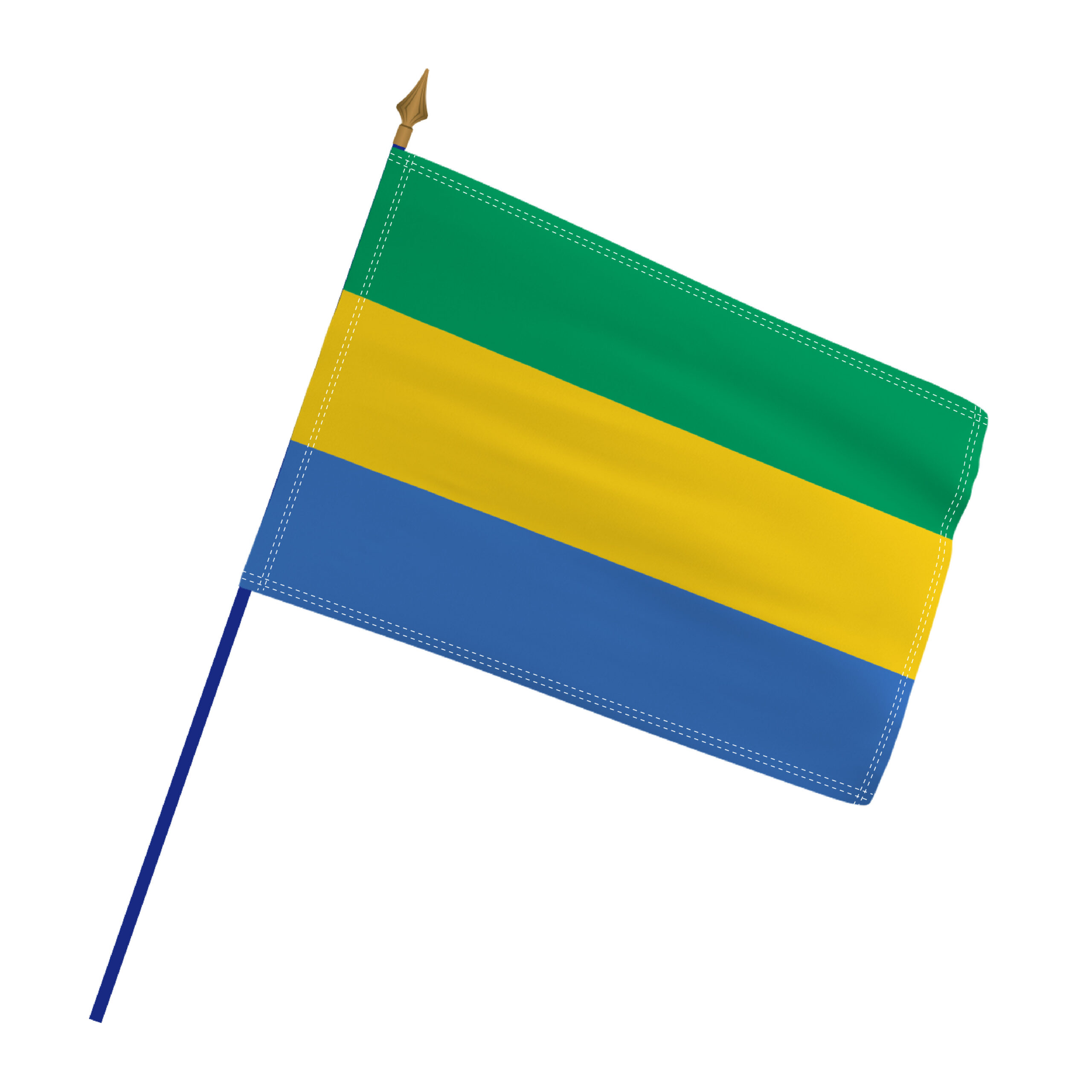 Célébrez les couleurs du Gabon avec ce drapeau fabriqué avec soin en France dans notre atelier de Rochecorbon. La maille drapeau 100% polyester, imprimée par sublimation directe, restitue avec vivacité les trois bandes horizontales vert, jaune et bleu du drapeau gabonais.